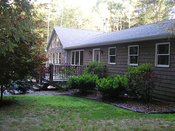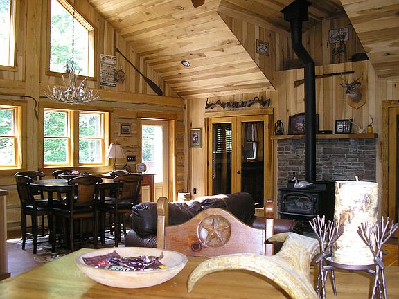 Paradise Falls is a cottage community located in the beautiful Pocono Mountains. Paradise Falls has a mixture of full time residents, year-round and summer vacation cottages. Amenities Include: 400 acres of woodlands, including a trout stream and hiking trails throughout. Swimming lake and lakeside sand beach. Tennis and basketball courts, playground, shuffleboard and pavilion at the base of Paradise Falls. In summer months, the ice cream shop is open and members may wish to attend social events throughout the season. For more information about Paradise Falls, please visit the website at www.pfla.org Property Information: 1900 sqft open concept ranch home features one floor living on two wooded lots. Completely remodeled 2009-2010 inside and out. Interior: This home features new construction Pella windows, clear custom tongue oiled trim. Original oak hardwood floors, wide plank laminate in great room and spare bath with recessed lighting throughout Room Features: 2 BR 2 Bath open concept kitchen and living room with a magnificent great room. Large (24x24) custom built great room features 15 foot poplar cathedral ceiling with cut nails. Hand hewn log walls constructed from oak trees cut from back yard. Custom trim and window sills. Large skylights and custom gable windows bring in lots of light. This room is a work of art and is simply amazing! Huge semi-custom kitchen features loads of cabinet space, large pantry, automatic drawer closures, granite counters, deep double sink, large center island (seats 4). All stainless steel appliances remain (purchased in 2009) Two bathrooms, guest bath has original porcelain tub with new tile shower surround. Large master bath with shower and laundry. Laundry in master bath for convenience. High efficiency stacked laundry appliances will remain. Pella slider to rear deck from master bedroom…just a few steps from the hot tub. Exterior: Low maintenance stone and vinyl exterior. New (2010) 30 year architectural shingled roof. New fascia, soffit and spouting, Low maintenance landscaping, custom stone walkway built from quarry stone behind home. Low voltage landscape lighting. Beautiful wooded lots (2) with mature mixed woods. Very large circular stone driveway with ample parking for friends and visitors. Huge custom decks front and rear. Rear deck features sunken 6 person Charisma hot tub overlooking the wooded lot. Large 2 car garage, insulated garage doors with openers. Basement and crawl space for added storage. Mechanicals: 200 amp service (new panel), sub-panel with generator hook up, whole house surge protected. Electric hot water heater, new high efficiency heat pump/central air. New ductless heat pump (high efficiency mini split) in Great Room. New Lopi Liberty wood stove with fan and custom etched glass. Easily heats entire house on cold winter nights (5-6 cords of dry/split hardwood remain). All new exterior features front façade in vinyl cedar siding and stone. On site well and septic/drain field. This home resides within the Paradise Falls Lutheran Association. Purchase is contingent on obtaining a membership (subject to approval by Association). This home will be sold on a cash only basis, and "as is". Annual Membership dues $2,920 Taxes $ 1,550
