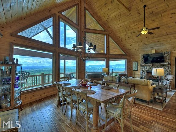 Mountain views that will take your breath away! This stunning & immaculately maintained 4 BR/3 1/2 BA lodge with long-range layered mountain views is the opportunity of a lifetime. Located in the highly sought after Sunrock Mountain community, you are just minutes from the lovely mountain towns of Blue Ridge & McCaysville. This luxurious mountain retreat boasts a wall of glass windows overlooking breathtaking mountain scenes, soaring cathedral ceilings, rock fireplace, granite countertops, pecan walnut floors, modern rustic accents galore, large screened party porch, new 2 car carport, & more! The appliances in the home are top of the line including all GE CAFE refrigerator, dishwasher, & avantium combo microwave/convection oven. Master suite features spacious walk-in tile shower & double vanities. Finished terrace level offers BR/BA, den/REC room, & wet bar with wine cooler. Welcome to the mountains!