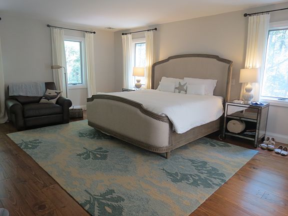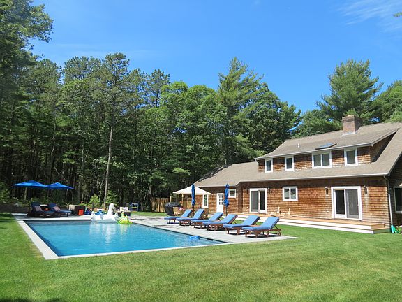 Travel down a long drive through majestic white pines to arrive at this impressive 4000 sf shingled traditional on 2.2 acres of privacy only minutes to EH Village, Sag Harbor Village, and beaches. Walk through a welcoming covered porch to enter a spacious foyer that leads to an open chef's kitchen with Sub-Zero and Wolf appliances, dining area and great room with cathedral beamed ceiling and gas fireplace. The open den/family room/office with bay window can be made private using a custom designed sliding barn door. The great room, kitchen and family room have french doors that open to an expansive lawn and open skies with a 20x40 heated gunite pool surrounded by over 1,400 sf of bluestone terrace. The first floor bedroom, with masonry fireplace, has an exquisite ensuite marble bath. Completing the first level is a full bathroom, windowed laundry room with slate floor and a two car garage with custom wood doors. On the second level is the expansive master suite including a wainscotted marble master bath with shower and oversized tub, and two additional guest bedrooms with marble bath. The fifth bedroom with ensuite bath has private access up a separate flight of stairs that is naturally lit by a cupola above.The lower level with 11" ceilings can easily be finished including additional living space and a legal sixth bedroom (septic compliant). There is 4 zone HVAC, each with Nest thermostats, new security system, new roof, well, septic, water filtration, high-efficiency boiler and new indirect hot water tank. Recent sale next door was over $4,000,000. This country home is well priced at $2,895,000.