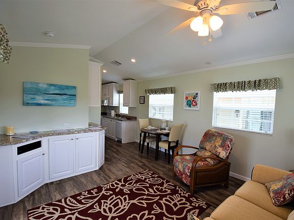 BUY NOW FOR the UPCOMING SEASON! Beautiful New Chariot Home in Winterset! This home features a beautiful Open floor plan with modern decor, coastal color scheme and plenty of natural light! The spacious living room is perfect for entertaining guests and the galley kitchen offers plenty of storage. In the Master Bedroom you have plenty of built in storage in the cabinets as well as a wall to wall mirror closet. The bathroom in this home features a walk in shower. This home also has a large porch that runs along the side of the home that is perfect for relaxing in the warm Florida climate! CALL today for Your Showing! Winterset is a lovely 55 retirement community located out of the hustle and bustle yet near I75 and I275 for easy travel access. Nestled on Frog Creek, it offers a nice country feel yet still in great proximity to local beaches and entertainment!