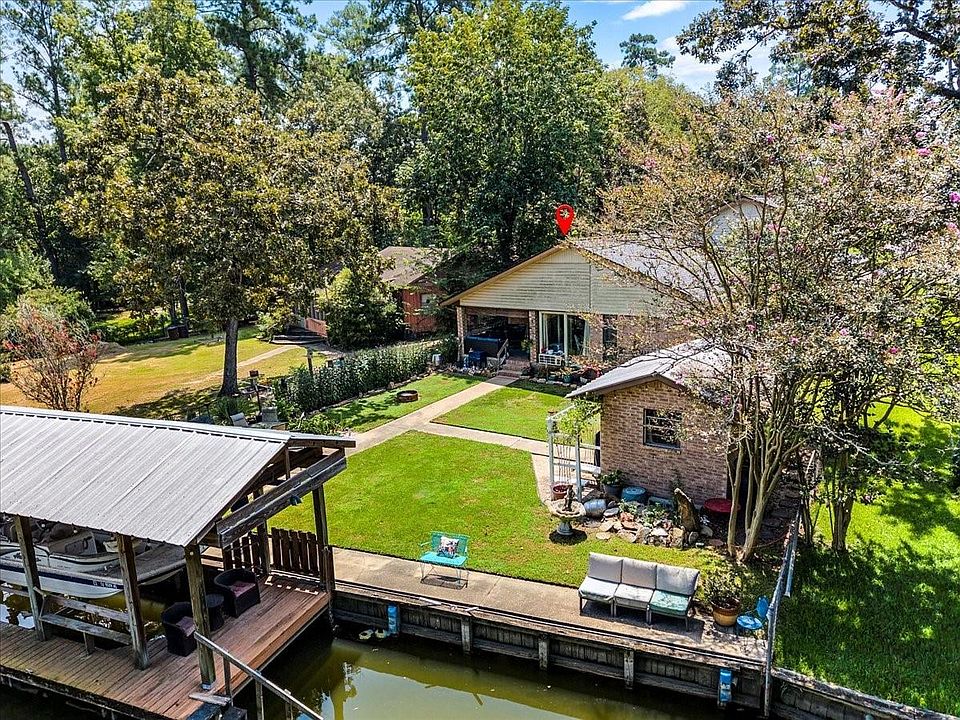 Lake Livingston waterfront retreat w/ almost $200K in upgrades! Featuring 68 ft of protected shoreline w/ boathouse & boat slip w/ lift, this move-in ready home is perfect for full-time living, a weekend escape, or an investment property. Enjoy an open layout w/ double primary suites, vaulted ceiling, a floor-to-ceiling brick fireplace, formal dining, downstairs game room, & a remodeled kitchen with Class 5 granite, custom cabinets & new appliances. Major updates include roof (2025), HVAC (2023), electrical (2023), water heater (2025), whole-home filtration, new flooring, lighting & more. Bathrooms boast a $38K custom shower, new sinks, fixtures, & custom mirrors. Outdoor living shines w/ a covered lakeside patio & mineral spa, mosquito system & lush landscaping. All the big updates are done! Oversized garage, large driveway, & surround sound complete the package. Located in a gated community w/ private boat ramp & low HOA dues- move right in and start enjoying the lake life!