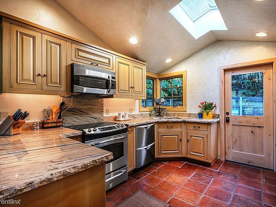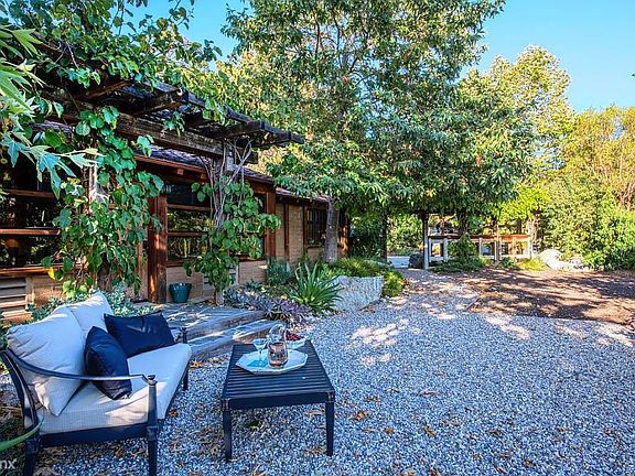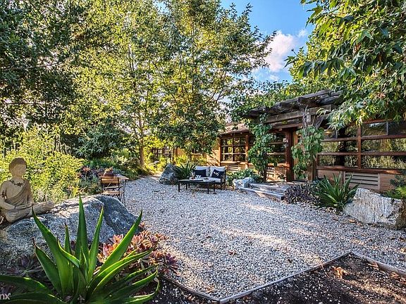 Views of the mountains and gorgeous gardens are some of the highlights of this home and, it's just a few minutes from the restaurants and wine tasting rooms of Carmel Valley Village. This beautiful home is surrounded by gardens, filled with succulents, native plants and grasses. Native oaks and Monterey pines just beyond the garden add to the sense of peace and privacy. The home is just 15 minutes away from shopping and dining in Carmel-by-the-Sea, 20 minutes to Pacific Grove, Pebble Beach or Monterey, and 45 minutes from Big Sur. You pass under a Wisteria vine-covered trellis to enter the front door, where youll find a living room, dining area, and kitchen in an open floor plan, a wood stove and a piano. Flooring is a combination of easy-care Saltillo tile in the living areas and Berber carpet in the bedrooms. There are vaulted ceilings and whitewashed beams throughout. The living room has a wall of windows which bring the outside feel inside, HDTV and a double sleeper sofa, as well as a dining room table with seating for six but can be expanded to 10. Kitchen includes GE and Whirlpool appliances and granite counter tops. Skylights in the kitchen, and windows throughout, add natural light to the rooms, with garden views from bedrooms and living areas. Built-in cabinets give ample room for storage. There are several outdoor seating areas. Doors from the kitchen lead to a patio area with gas grill, and French doors from the master bedroom open to a private patio with outdoor seating. Master bedroom suite includes a queen bed and bathroom with a shower stall and stone tile throughout. Guest bedroom has twin beds that can convert to a king and adjacent sitting /TV area, which includes a daybed for additional sleeping options. Tiled bathroom has a bathtub and separate shower stall. Laundry room has washer/dryer and plenty of storage space. The property has a code activated security gate. Two to three cars can be parked in the driveway inside the gate. (RLNE2476598)