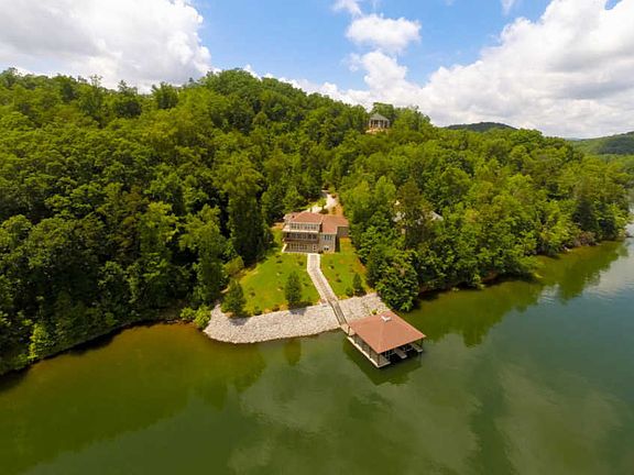 LAKEFRONT LIVING! Stunning all-brick 2-story basement home with breathtaking views of Watts Bar Lake from every angle. This unbelievable home offers a desirable floor plan with an open living area w/ 9-ft. ceilings, a main level master suite and a finished walkout basement (possible in-law suite). Features include an open eat-in kitchen w/ granite counter tops, center island & gorgeous cabinetry, a luxury master suite w/ a spa-like master bath, irrigation system, a poured concrete foundation and a functional drainage system around the house. The basement includes a huge rec room, bedroom, full bath and a wet bar. 2 large back decks off of each level of the home to enjoy the year-round deep water. Enjoy the water from the custom-built dock with 4 lifts! Community boat slips available.