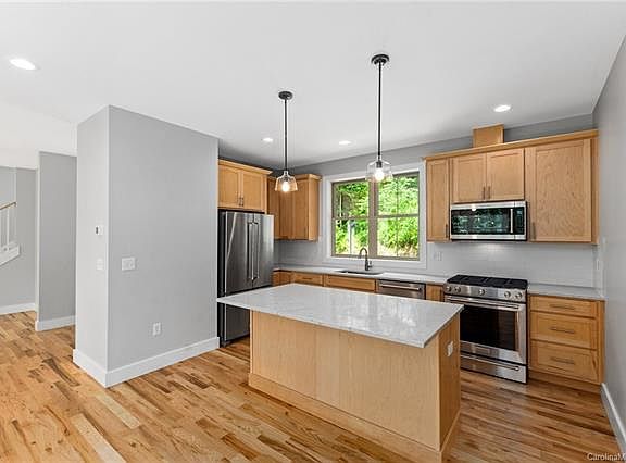 Gorgeous new construction nestled in the trees yet close to Downtown Asheville, Historic Biltmore Village, Kenilworth Park and Mission Hospital. Come home to this quiet cul-de-sac and listen to the birds on the sunny back deck. Undeveloped land behind the property adds to the woodsy setting. Feel good about your carbon footprint- this home is GreenBuilt and Energy Star certified with heat pumps, low flow toilets, efficient appliances and more. Oversized windows bath the open living space in natural light. Beautiful white oak floors and tall ceilings grace the house. Savor cooking in the gourmet kitchen, and sup in the spacious dining room or on the attached patio. Upstairs find two light-filled bedrooms and a full bath with dual vanities, granite counters and a clerestory window. The finished basement with private entrance and covered patio is home to a small apartment with a family room, bedroom, bath and a kitchenette. Perfect for homestay, house guests or as an extra bedroom.