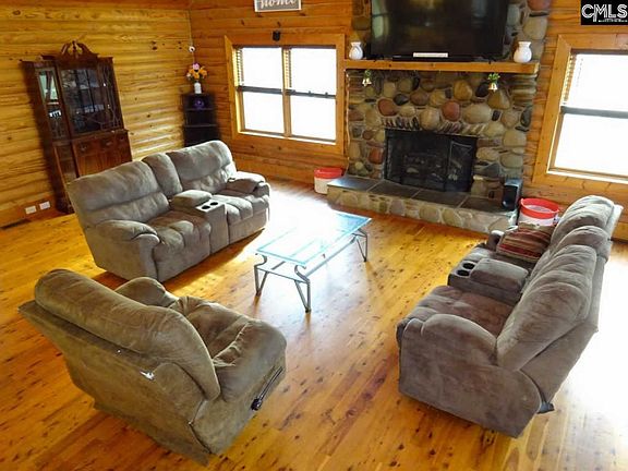 Who wouldn't want a Southland Log Home on 11.33 acres with 6 Bedrooms?! This is quiet country life at it's best! The home sits at the back portion of the land with an 8'x58' Front Porch overlooking the expansive front acreage. Walk in to the 2 story Greatroom featuring a Cathedral Ceiling, Stone gaslog FP, and Beautiful 21 light Chandelier. The Greatroom is open to the Dining Area. The Kitchen features a Breakfast Bar, Island Cooktop, Granite Countertops, double oven (1 is convection), and built-in wine cooler. The 20x40 Inground Pool was converted to salt water and a new vinyl liner installed in 2018, and comes with a $2000 Dolphin Bluetooth pool vacuum. The 30x60 Workshop has electricity, a 30x20 enclosed area with a concrete pad, and an open Barn style 30x40 area that can fit most boats and campers. There is also an electric pole for an RV hookup with 110/220 volts. The fence is 1 acre around the house, 10x10 deck, and pool/patio, with a perimeter fence around the rest of the acreage including a food plot. The primary bedroom/bath is on the main floor with a walk-in closet, dbl vanity, separate shower. 3 BR/1 BA upstairs, 2 BR/1 BA downstairs. Other updates: 2018 a 57 gallon commercial water heater; 2019 a new well pump and septic pump, and a 2 ton heat pump was replaced. The home has a hardwired security system with 4 cameras (room for 8), and entry pads on 2 doors. The interior was recently painted, and 4 new ceiling fans installed. RC dirt track in front yard.