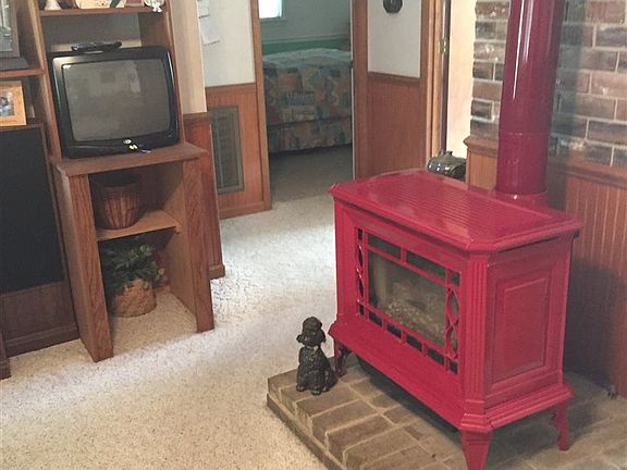 Very nice home at end of cul-de-sac offers privacy & views of wildlife! This 2 BR, 2 BA has an extra room used as an office; a nice-sized kitchen with breakfast nook; pantry & laundry area; a LR or dining room with built in entertainment center and gas log fireplace and a large rustic family room with another gas log fireplace! There is an attached garage plus an older double detached garage. You'll love the rocking chair front porch and the deck on the back!