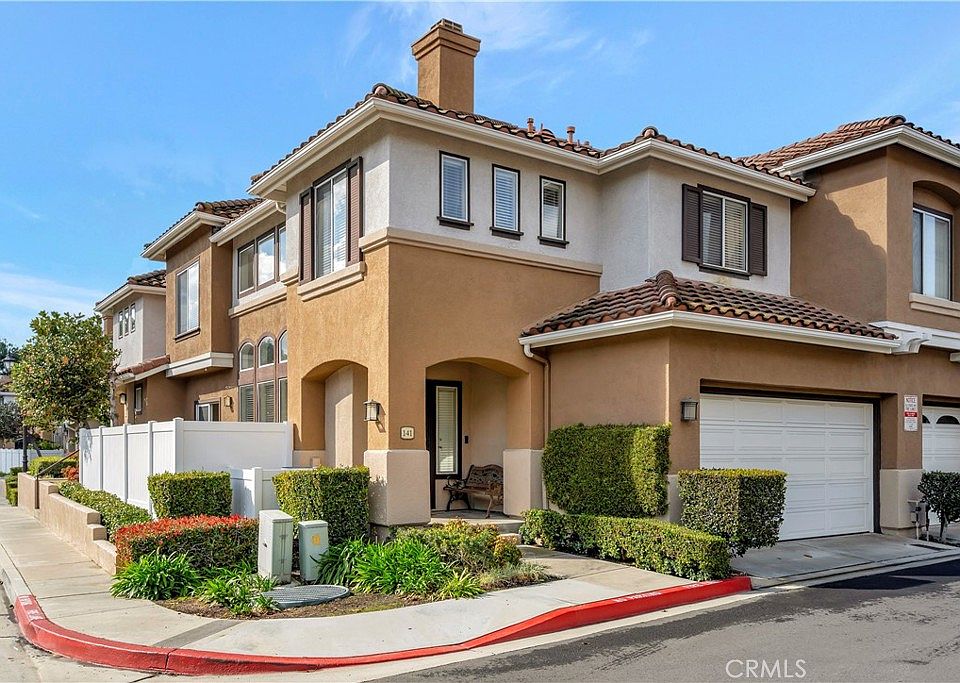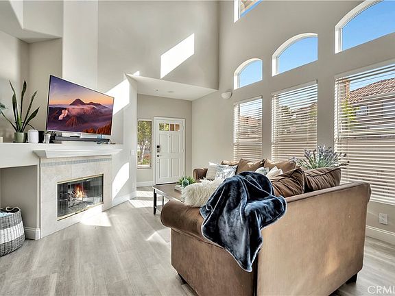WATCH THE VIDEO (360)!! Fabulous location! This quiet and peaceful end unit is situated in the highly sought-after community of Terrace View. The townhome style home offers 3 bedrooms, 2 ½ bathrooms, and a two-car attached garage, with the added extra of a vinyl fenced private patio, perfect for entertaining, kids playing, or puppies romping! Delight in the volume ceilings downstairs, spacious living areas, fabulous window patterns cascading natural light throughout the home, designer paint colors, luxury vinyl plank flooring downstairs, and upgraded carpeting upstairs. Add in the enjoyment of this home being an Amazon Alexa + Samsung SmartThings home. The spacious kitchen has a new stainless-steel range and dishwasher, plenty of cabinetry for storage, great countertop space, and recessed can lighting. The kitchen opens to the spacious dining area with upgraded light fixture, and the delightful private patio. The living room is enhanced by a lovely gas log fireplace to provide added warmth on these cold nights! The master bedroom is light and bright, and is enhanced by a volume ceiling, upgraded ceiling fan, and recessed can lights. The master bathroom has upgraded luxury vinyl plank flooring, two sinks with a long countertop, a tub/shower with glass enclosure, upgraded light fixture, and a walk-in closet. The two secondary bedrooms are also light, bright, and spacious! The secondary bathroom upstairs has an upgraded vanity, tub/shower with glass enclosure, and luxury vinyl plank flooring. The downstairs guest bathroom has an upgraded vanity, newer fixtures, and lights. Added bonuses include the RING doorbell, the wall outlets, light switches, and wall plates have been replaced; the light switches all have dimmers and work with the Smart system. Enjoy the private community pool and spa with kids’ play area just around the corner. This wonderful community is tucked away, yet so close to everything! Walk to the shopping centers and restaurants; enjoy Lake Mission Viejo privileges offering fishing, boating, beaches, picnic areas, club house, summer concerts, and other seasonal events. Find beauty surrounding you in Whiting Ranch Wilderness Park where hiking and biking trails abound and improve your golf score at the Oso Creek Golf Course! Award winning, Blue Ribbon Distinguished schools in the highly desirable Saddleback Unified School District. Race to this home. You will delight in calling it “home sweet home”!
