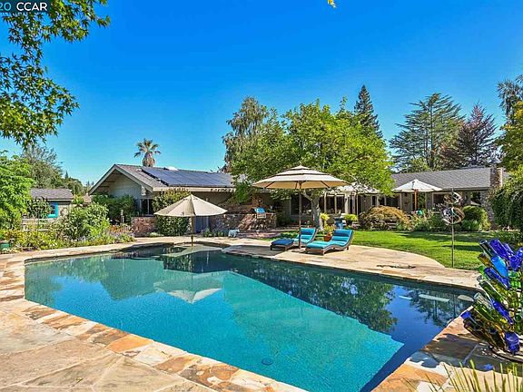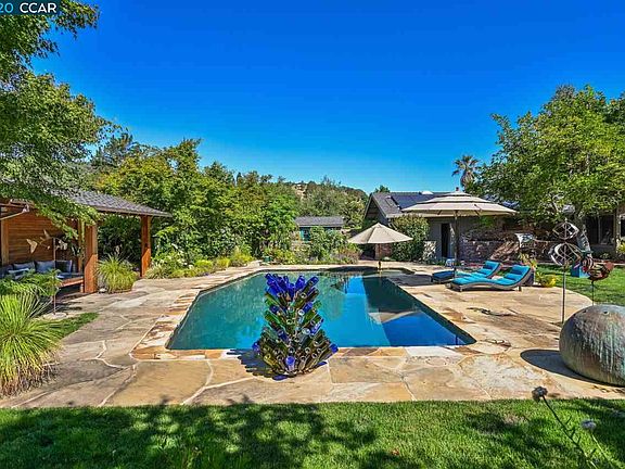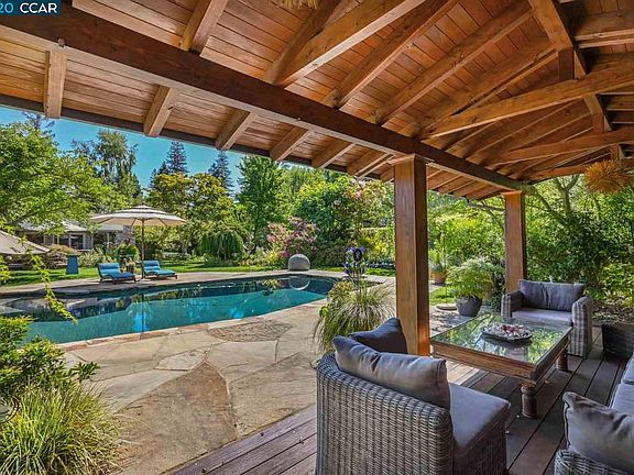 A garden paradise set on the West Side of Alamo. Walk to town and the Iron Horse Trail or enjoy the pool and the fabulous backyard with all its pathways and spectacular private gardens. Spend the evening on your deck or the afternoon in the pebble tech pool or enjoy dinner in the loge, Pick all your vegetables from your private garden with an unbelievable avocado tree, The brick work from the potting shed to the fireplace, the barbecue area, and even the mail box was all done by the famous brick artist that did Yogurt park in WC. When inside you will enjoy the open concept which brings the gorgeous outdoors in. Hardwood floors throughout most of the home plus wonderful wood vaulted ceilings in the living room. Both bathrooms have been remodeled as well as the kitchen with large bar seating open to the family room. All kitchen cabinets are custom made with pull out drawers for great storage. This home is one to see...... for it is a truly "One of a Kind" A West Side Gem