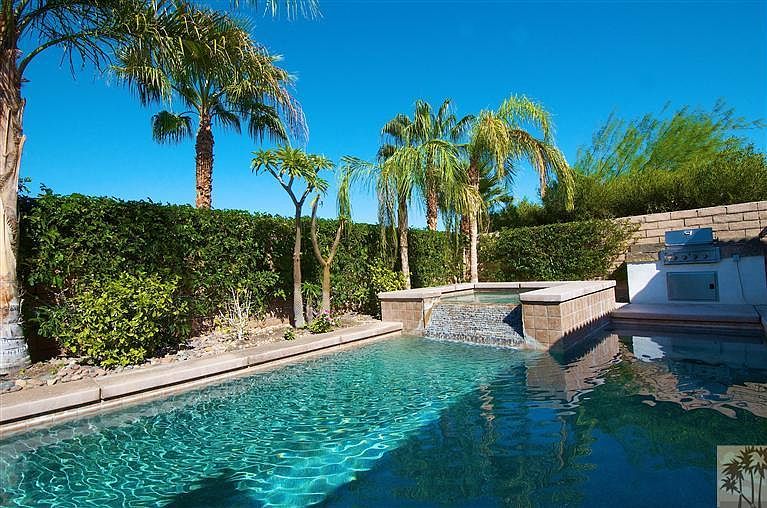 What a value! Popular floor plan in Tuscany with 4 bedrooms centrally located in beautiful Rancho Mirage. Quality construction, an open chefs kitchen to the family room w/stainless steel appliances, full backsplash, island bar w/ ample seating, granite counters plus secretary desk. 4 ample guest bedrooms with baths. Enjoy the private backyard with sparkling pool and elevated spa with stack stone. Built in BBQ in the backyard completes the ultimate desired outdoor living in the desert. The master bedroom has a glass french door for easy access to the pool and spa. Large walk in closet in the master and custom tiled counters in the master bath are sure to please. All this and more conveniently located in beautiful Rancho Mirage, City of Presidents, close to all the desert lifestyle has to offer with golf, fine dining, casinos, art galleries, hiking, biking or just desert casual and relaxing. Perfect full time playground or winter retreat with great rental history