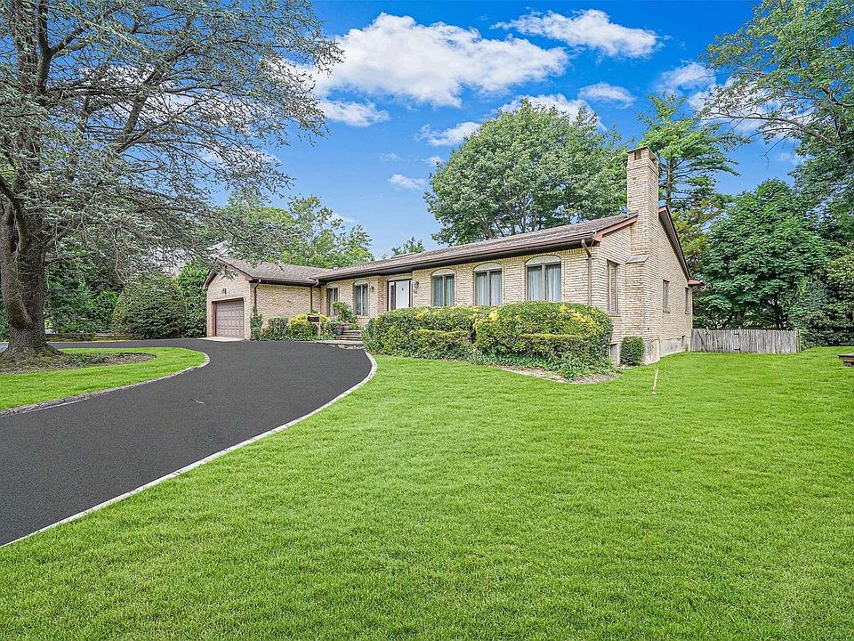 Outstanding All Brick Expanded Ranch Perfectly Situated On Quiet Tree-Lined Street. Spacious And Sun-Filled Interior Features Expansive Great Room w/Majestic Cathedral Ceilings, Exposed Timbers, And Wood Burning Fireplace. First Floor Primary Suite w/Double Vanities, Jacuzzi Tub, and Shower. Elegant Circular Driveway, Two Car Attached Garage, And Full Basement w/Outside Entrance. Clean And Well Maintained Providing The Opportunity To Move Right Into To The Coveted Manhasset School District. This Large Ranch Footprint And Brick Construction Can Also Easily Be Expanded Into A Stately Colonial. Tremendous Possibilities!