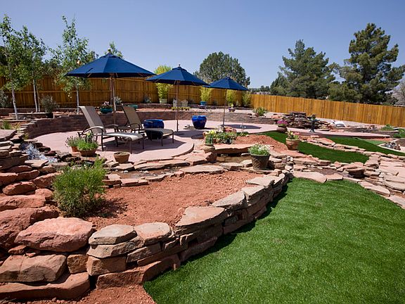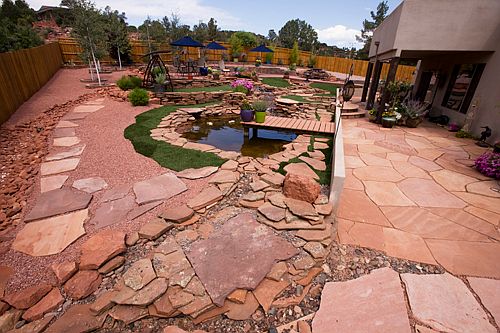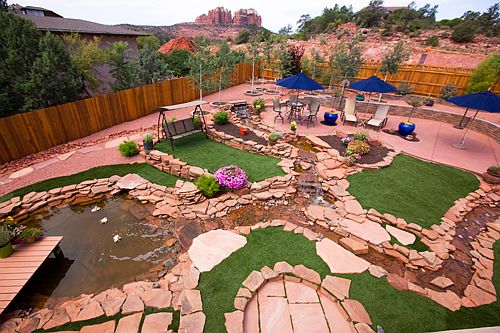 Beautiful Santa Fe Style home with 3 bedrooms, and an Office. Backyard looks like a Resort with small pond and waterfalls. Rv parking beside the house.