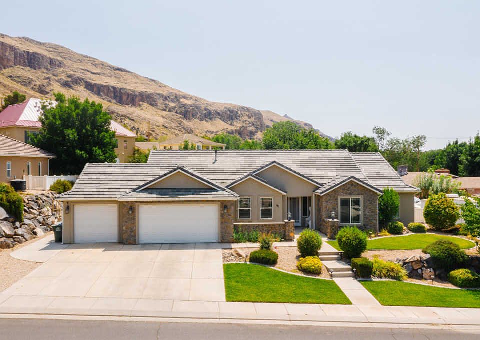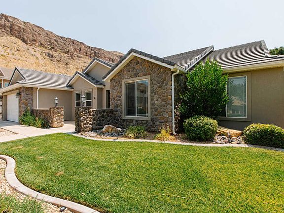 Hard to find home in the SE fields of Hurricane. 2x6 exterior walls, epoxy garage floor, water softener, courtyard, covered patio, mature landscaping, quiet street, granite countertops, white cabinets, shiplap, stainless appliances, 3-tone paint, beautiful fenced in backyard, walk in closet, jetted tub, window coverings and much more. All listing information is deemed reliable, but not guaranteed.
