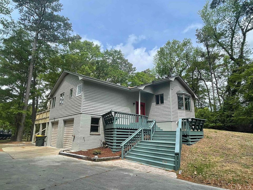 Look at this beautiful 3 bd, 3-bathroom canal-front located in Southern Shores. On the first floor, you can find a two-car garage with dry entry to the main part of the house, a workshop with lots of storage, a full bathroom, one bedroom with a private entrance, an outdoor shower and a very large covered area that can be used as you wish (carport/storage/sitting area). Carport has the drainage system that goes to the side yard. The second floor features a main bedroom with a private bathroom, a walk-in closet, and access to the porch with a hot tub. The main bedroom has a double sink vanity, a large tiled shower with multiple shower heads. The second bedroom on the 2nd floor has a private bathroom with a whirlpool tub. Kitchen with updated Cozy Home soft close cabinets and stainless-steel appliances. The kitchen has extra storage under the kitchen window. The living room has a wood-burning fireplace and is conveniently connected to the sunroom that has updated windows. The buildings in the living room, kitchen and vanities are from Cozy Home Cabinets. The home has an instant water heater and a full house generator. The owner states that the tank size can support a generator for up to 2 weeks. A utility shed is in the backyard where you can store all the boating and gardening tools. Dock has water and power, moorage for 2 boats. Ramp is recently redone.