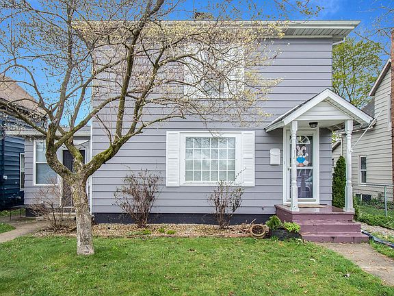 All offers to be submitted by 8pm Friday April 21, with expiration Saturday 1pm. Multiple Offer Notification. Charming Mishawaka Farmhouse within walking distance to the River Walk and downtown restaurants and shopping. Great character with honey oak floors in living and dining room and pine floors on second floor. Features include updated kitchen with cabinets, solid surface counters and stainless steel appliances along with recessed lighting and ceramic floor. There is an updated full bath on second floor and a convenient half bath on main floor. The main floor also has a stacked washer/dryer. There is a 16x10 sun room with added insulation and 2 new entry doors for extra living space.The main bedroom features an electric fireplace and a large walk in closet with closet organizers. There are 2 more bedrooms upstairs (one of the bedrooms does not have a closet). The full basement has a finished family room along with a second laundry hook up, large storage area and newer furnace. The exterior was painted in 2021. Other improvements include plumbing, electric, and vinyl windows (except front picture window). There is a detached garage with extra parking and partially fenced backyard. All you need to do here is unpack your bags.