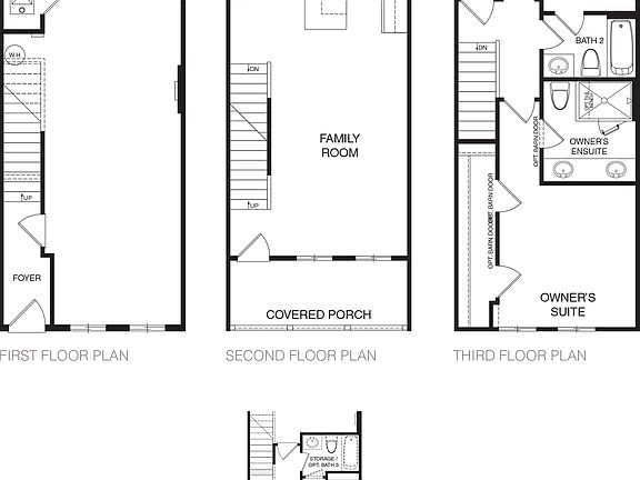 The Middleton floorplan features open concept living on the middle floor with an oversized kitchen island and a covered porch. Chefs and entertainers alike will enjoy the spaciousness of the kitchen and connected family room, and the built-in kitchen pantry offers an abundance of storage. The top-floor offers a private owner's suite and bath with a secondary bedroom and bath for a roommate or guest. The first floor includes a private garage and an optional flex space with full bath.