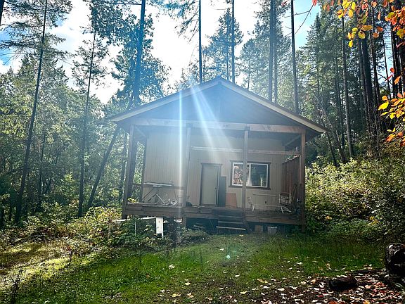 Are you dreaming of a cabin in the woods....or three? Hawkin's Creek runs through this 2.36 acre property with tons of possibility. Three structures, vast rock gardens and a large garden/pasture across the bridge. Fruit trees, kiwi vines, berries, you name it! The original 1300ft2 main house is currently under renovation with a covered porch out back right on the creek. The 800ft2 cabin uphill is framed, sided, wired and has a metal roof. It has the potential to be a 2bd/1b with a large covered porch out front and a smaller porch out back. The 700ft2 studio cabin is ready to move in today and has some unique finishes and attached single garage. Sale is AS IS. Bring your homesteading or rental visions to life!