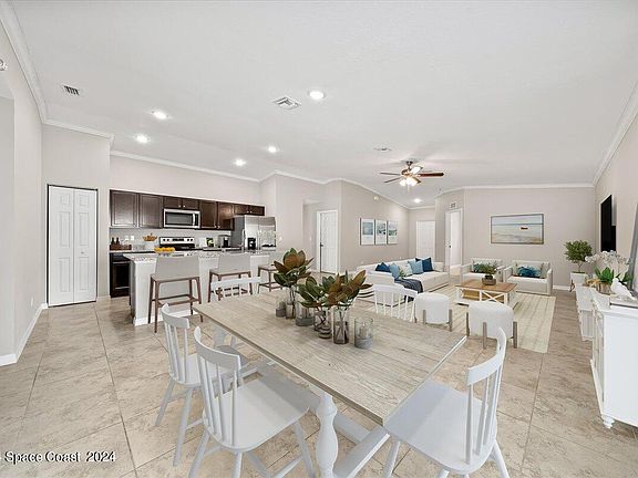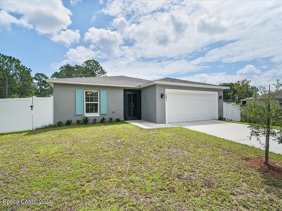 Stunning 2023-built home that combines modern elegance with thoughtful upgrades. This 4-bedroom, 2-bath gem boasts a host of enhancements that set it apart from the rest. Enjoy a relaxing environment with a screened front enclosure, a fully screened lanai around the extended back patio, and a pristine white vinyl fence for added privacy. Inside, you'll find elegant granite countertops in the kitchen and bathrooms, high-end seamless shower glass in the primary bath, and modern crown molding in the kitchen and living areas. Additional upgrades include deep stainless steel sink equipped with a reverse osmosis system at the kitchen island, tile flooring throughout the entire home, and upgraded light fixtures. This beauty is move in ready! Excellent location close to shopping, dining, and highly rated schools.