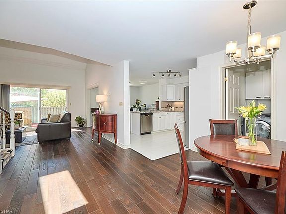Stunning 3 Bedroom, 2.5 Bath home in highly sought after location, just steps to 12 Mile Creek, trails, shopping, restaurants, highway access, and all other amenities. This desirable condo community is nicely landscaped, providing a park like setting and offers an inground pool with lounge area. The moment you step into this home you'll love the abundance of natural light and soaring vaulted ceilings. The main floor features engineered hardwood flooring, a modern kitchen with white cabinetry, granite counters, large breakfast bar, tile backsplash and stainless steel appliances. The open concept floor plan is perfect for entertaining and offers 2 functional dining spaces. The living room features a skylight, gas fireplace, and oversized patio doors that lead to your private interlock patio. A main floor bedroom or office, 2 pc bath, convenient laundry/mudroom with access to the 1.5 car garage completes the main level. On the second level, double doors lead to your oversized primary suite with large walk in closet and 4 pc ensuite with double sinks and a jetted tub. 2nd level offers another large bedroom and updated 4pc bath. Other features include custom window coverings throughout, plenty of parking in the double interlock driveway plus visitor parking available, an unspoiled unfinished basement with high ceilings which is perfect for storage or finish it off for additional living space. Don't miss your opportunity to enjoy this High Pointe community!