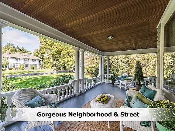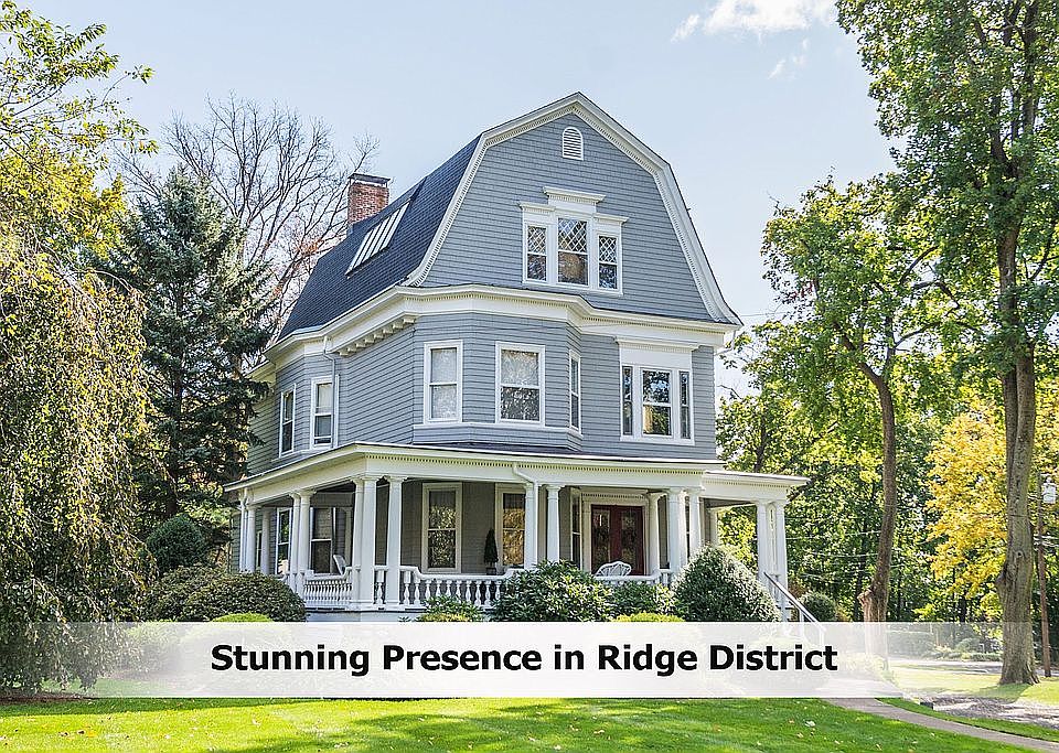 Impressive & remarkable residence in Ridge District is lovingly maintained and moments from Town, Train & Schools. Expansive restored Porch offers peaceful lounging w panoramic views to gorgeous neighborhood. Entrance Foyer sets the tone w soaring ceiling heights, wide archways, pocket doors, hardwood flooring, & turned staircase. Great bones continue in generous scale for the Formal Living Room, Banquet Dining Room and Family Room w/Fireplace. Crisp newer Kitchen with convenient access to lrg. private yard & driveway offers stainless appliances & quartz counters. Convenient Mud Room, Butler's Pantry, Back Staircase & Deck for Al Fresco Dining & BBQing. Mast Bedroom w En Suite Bath, 3 Bedrms, new Hall Bath and Laundry complete the 2nd Floor. Discover a most enchanting 3rd floor where abundant windows and skylights shed light into this huge finished space [33x22] Adjacent Office & Half Bath. Freshly painted, New Roof & Furnace. Established specimen plantings on park-like property.