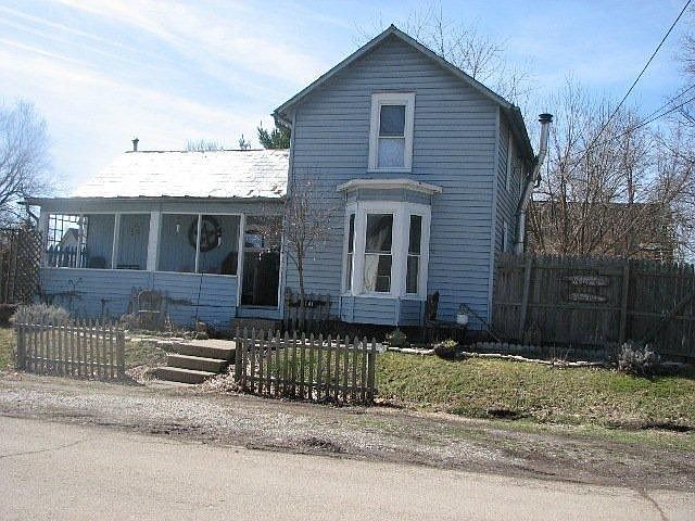 This cozy one of a kind home features a living room with hardwood floors, woodburning stove, and an exposed beam ceiling. Character shines throughout this home. There is a first floor bedroom and the second bedroom can be converted back into two. Appliances are included in the kitchen and the dining room is just steps away. Relax in the back yard on the brick patio that is surrounded with a privacy fence and boasts with herbs, perennials, gardens and a pond. Plenty of room for you car in the barn. All this at the end of the street on three city lots.
