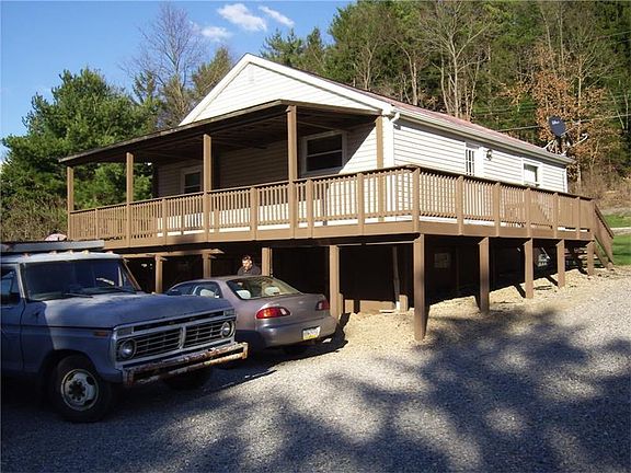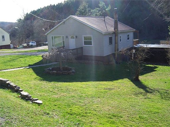 Great starter or downsize with lots of updates and a wrap around deck. Newer Hardwood in kitchen and a knotty pine living room. Lots of Yard and Parking space. Small stream with a bridge in the rear yard. Walk out Basement and storage sheds. Move in condition some fresh paint.