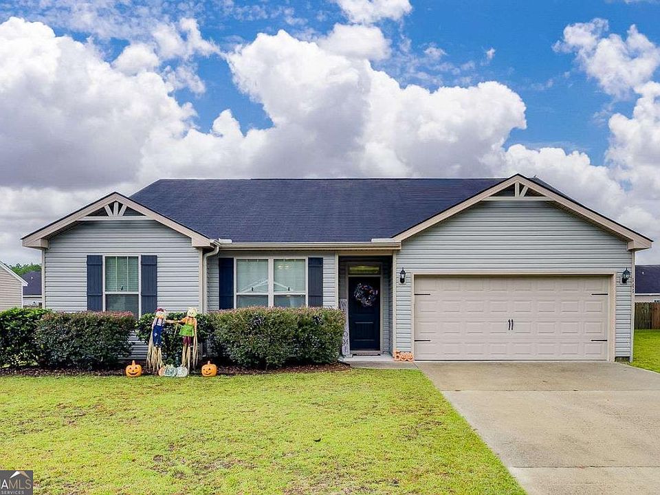 As you step inside, you are greeted by a private foyer-yes, your pizza delivery person won't see your living room. The moment you enter you'll notice the thoughtful layout. The split floor plan offers privacy & flow, 9' ceilings & LVP flooring throughout-no carpet, no fuss. The flex room with double glass doors is ready to become your dream office, playroom, formal dining, or creative studio. The kitchen features a bar, eat-in area, & SS appliances. By the kitchen, you will find a laundry room equipped with a washer & dryer, along with pantry shelving. The primary bedroom features a walk-in closet, bath with double vanities, a soaking tub, & separate shower. The 2 additional bedrooms provide ample space for family or guests. Outside enjoy summer days by the above ground pool or unwind under the gazebo, all surrounded by a privacy fence that ensures your gatherings remain secluded. This home is perfect for the buyer looking for a complete package.