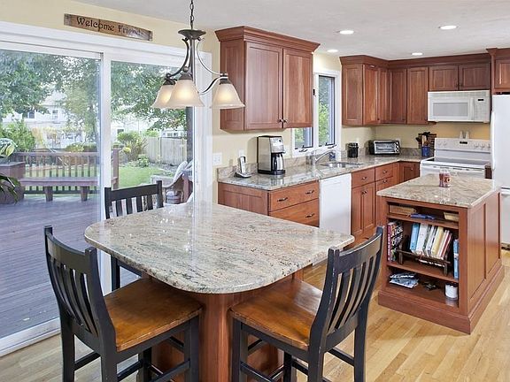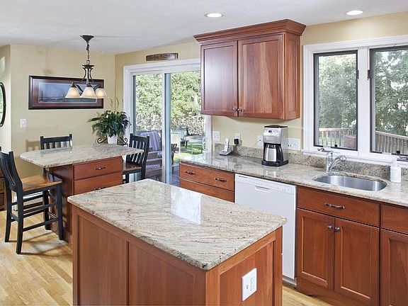 - Kit Dscrp: Main Level, Flooring - Hardwood, Countertops - Stone/Granite/Solid, Cabinets - Upgraded, Deck - Exterior, Kitchen Island, Recessed Lighting, Slider, Bathroom - Half