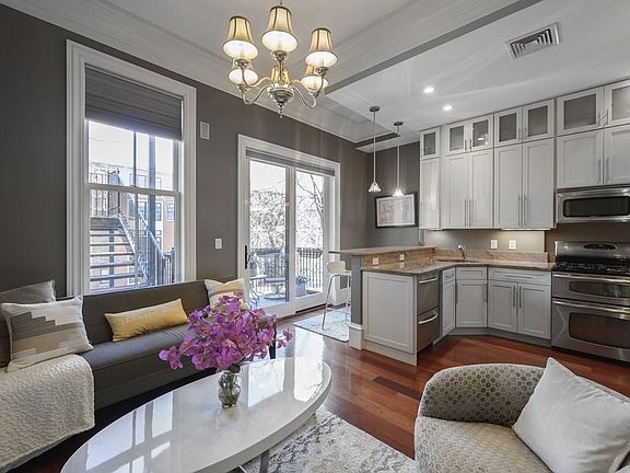 This South End one bedroom, one bath has it all! One flight up from the street, this bright floor-through home offers a private deck and a deeded, direct access parking space. Enter into the open concept living area with a gas fireplace, custom built ins and 10 inch crown molding. The kitchen features a gas range, stainless steel appliances, abundant cabinet storage, granite countertops and a breakfast bar. The bedroom, drenched with sunlight through four large windows, offers a generous walk-in closet, the perfect nook for a home office and an updated en suite bathroom. In-unit washer/dryer, central A/C, 10.5 foot ceilings, and hardwood floors throughout. Located between Columbus and Tremont, this home is just a quick walk to Restaurant Row, the Back Bay/South End border, gardens, dog parks and public transportation.