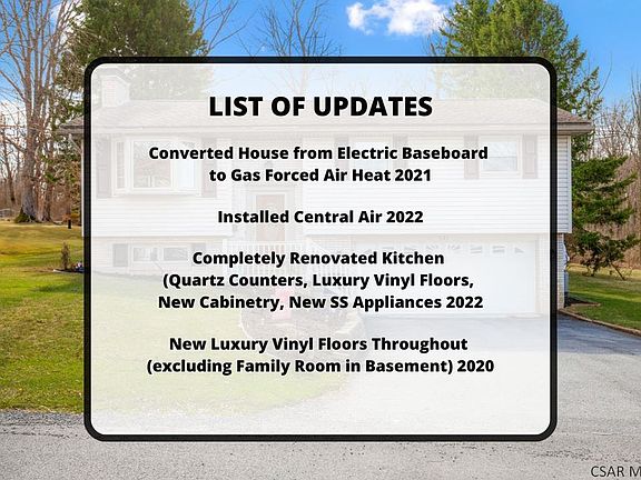 GORGEOUSLY UPDATED Split-Entry 3 Bed 2 Full Bath Home w/ 2 Car Integral Garage situated on a .24 Acred Lot w/ Wooded Backyard! CENTRAL AIR! 15x17 Living Room w/ Luxury Vinyl Floors & Bay Window! 11x21 Kitchen COMPLETELY RENOVATED w/ Luxury Vinyl Floors, Quartz Counters, New Cabinetry & SS Appliances! 11x13 Dining Room w/ Luxury Vinyl Floors & Ceiling Fan! 11x14 Bedroom w/ Luxury Vinyl, Ceiling Fan & Dbl. Closet! 10x14 Bedroom 2 w/ Luxury Vinyl, Ceiling Fan & Dbl. Closet! 11x13 Bedroom 3 w/ Luxury Vinyl, Ceiling Fan & Dbl. Closet! UPDATED 5x10 Full Bath w/ Tub! PARTIAL Finished Basement w/ 11x24 Family Room w/ Wood FP & Carpet! 7x7 Laundry Room w/ Slap Sink! 7x7 Full Bath w/ Walk-In Shower! FLAT Backyard! HIGHEST & BEST DUE MONDAY BY 8 PM!