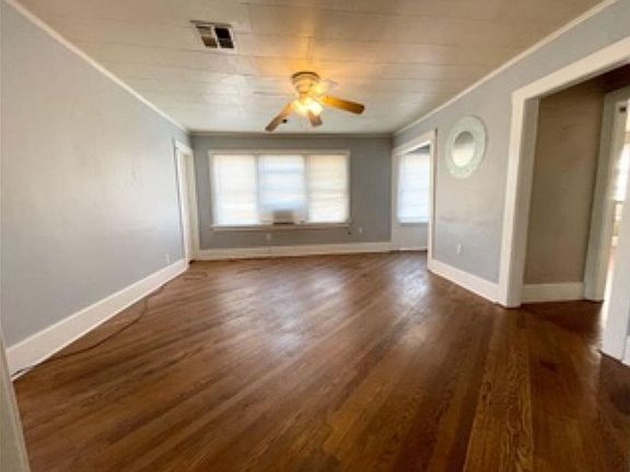 This up stairs duplex has 3 large bedrooms and one bathroom. It is 1400 square feet. It has a living room, formal dining and breakfast area. There are hardwood floors throughout. This home has a large back yard, central heat, mini blinds, and ceiling fans. The stove and refrigerator are included. It is located in the historic Gatewood Addition. It is close to Oklahoma City University and the Plaza District. Rents for $895/month. $895 Deposit. No Pets. Available now. To view this house please call between 8am and 9pm. Tenant pays bills