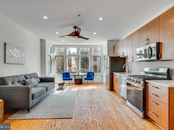 Sparkling, modern condo home in boutique 7-unit building, just off Logan Circle with super low fee. Stylish throughout with huge bay windows, gorgeous oak hardwood floors and custom shoji screens that separate the bedroom. Kitchen meets every need with new stainless appliances, quartz countertops, gas cooking & generous storage. Installed storage systems in both bedroom closets. W/D. Central A/C. Pet-friendly. Walking distance to Metro. Freshly painted with new stainless steel appliances and new quartz counters in the kitchen. Seller has secured and reserved an assigned, surface parking space located right behind the building from another owner in the building and is willing to prepay the rent on that space for up to two years. *Square footage is per prior listing via previous owner's appraisal and should not be used for valuation purposes.*