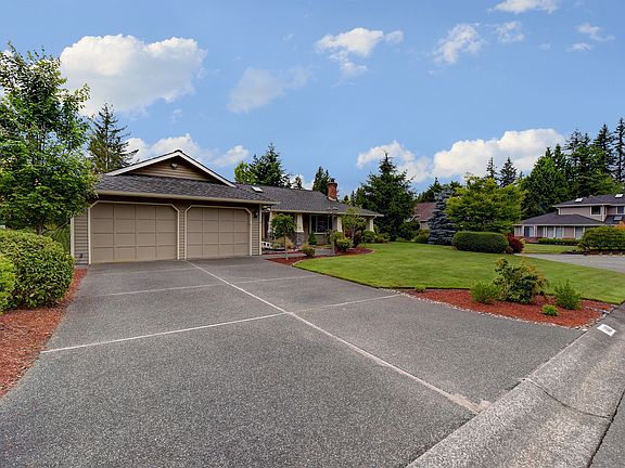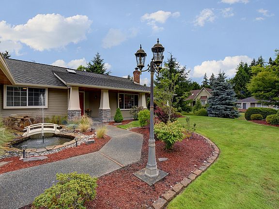 Sophisticated interiors define this Mill Creek rambler. Cul-de-sac location, corner lot w/ manicured landscaping. Wrap around porch & water feature welcome you home. Hardwood floors, granite kitchen, spa-like luxe walk-in shower w/ porcelain tile, waterfall/rain fixtures, heated flooring. 2 gas FP, AC, sprinkler system, skylights, solar tubes & 50 year Presidential roof. Smart technology lighting features & electric sunscreen. 16+ miles of trails, sought after Mill Creek Schools & Country Club.