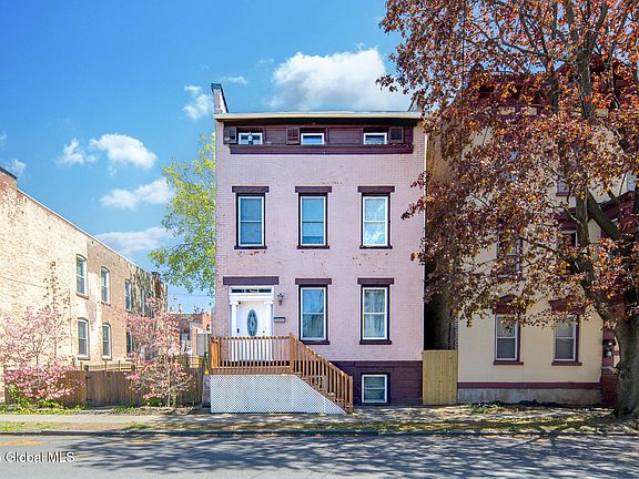 This doesn't come along often, but here is your chance to own this beautiful 3-story 4 bdrm, 2.5 bath home w/ one of the largest yards around w/5 rear off-street parking spots. Loads of original charm: fireplace mantles, exposed brick, baniststers, hard wood floors, & high ceilings w/just the right updates: large sunny kitchen, SS appliances, custom cabinets, granite counters, ceramic tile bthrm, 1st flr laundry, energy star windows and more. Sit on the covered back porch, & hear the bells from the local worship center while kids enjoy the included wooden swingset. Watervliet Public pool not too far but far enough.