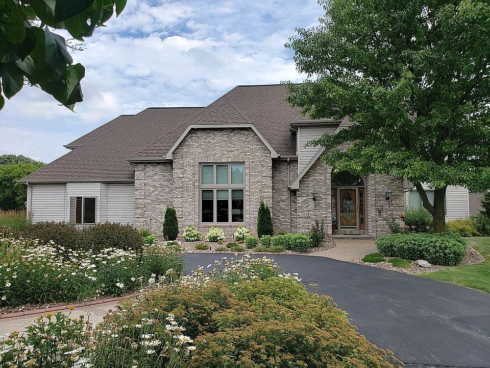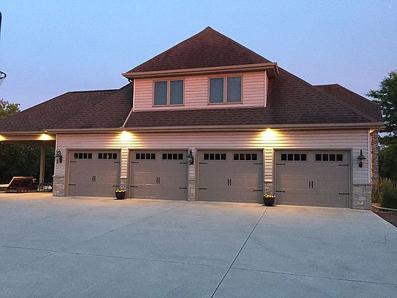 *Attached photos # 58 -82 are from previous homeowners prior to August 2013. This beautiful four bedroom, four bath, two story home offers amenities in abundance! Soaring cathedral ceiling in foyer opens to open staircase, dining room, and living room with a gorgeous stone, gas fireplace & wet bar. Stunning woodwork and built ins throughout home. Spacious kitchen with Corian countertops, oak cabinetry & large center island. First floor master suite has sitting area, spa-like bath, whirlpool tub, & stone walk in shower. Large master closet is separated for independent space. Spacious family room on lower level (basement) has a gas fireplace & attached bar room. This area opens to a stunning, enclosed screen porch with cedar walls and one of stone. This opens to exterior patio for enjoying sunshine or a campfire. It is a great space to entertain! Lower level also has game room with workout area & sauna. Lower level also contains a full in law suite (650 sq. feet) and full bath. Suite includes full kitchen, living room, laundry room, pantry & office which may also be used as a bedroom. Home as an attached four car, heated garage and a detached two stall garage in lower back yard matching the home. A car port is attached to the main garage as well. This can be used for parking or as an entertaining space as it is equipped with a ceiling fan & dimmable, recessed lighting. This carport and back porch connect to a gently winding cement sidewalk which leads down to firepit and screen porch area. Beautiful iron railings are there on every step also. The yard is surrounded by stunning, cheerful, perennial gardens. This is a must see as there is so much more!