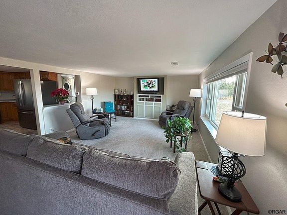 Country living at its best! This fabulous 3 bedroom, 2 bath home has lots of updates and is move-in ready. The home had new stucco in 2023. New Anderson windows in 2019. The kitchen was updated in 2023 and now features a wonderful island plus a large pantry. Refrigerator, dishwasher, gas range/oven ,washer, dryer and microwave are all included. Spacious laundry. Lights updated to LED. Home had a re-roof in 2021. There is a storage room in cellar which would be a great place for canned goods or wine. 2020 exterior doors were replaced. 2019 bathroom remodel. Carpet replaced in 2022. This one-acre property is a gardener's dream with 10 raised bed gardens total. approx. 200 sq ft. There is one share of Beaver Park irrigation included. Outbuildings include a 1 car garage with extra shop space with workbenches and cabinets, plus 2 storage sheds , one which is 16x12 and 2nd is 10x12. Covered back patio to enjoy the beautiful sunrises. Amenities include natural gas, city water, central air, new gutters in 2021.