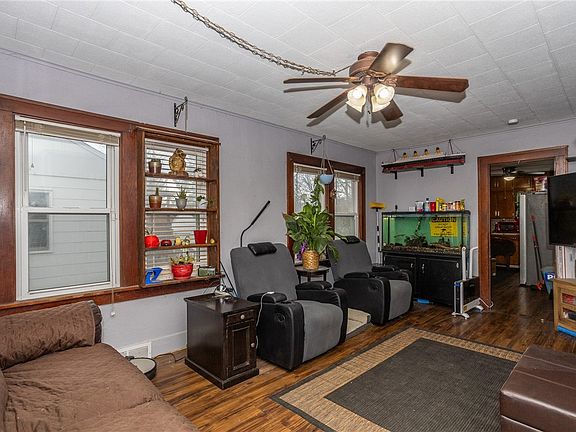 Don't miss out on this 3-bedroom, 1-bath bungalow w/a 2-car attached garage! Step inside through the large enclosed front porch and into the spacious living room featuring newer vinyl flooring and plenty of natural light. Enjoy the eat-in kitchen - stove, refrigerator, and dishwasher included. The 3 nice-sized bedrooms are perfect for your family! The walkout basement has potential for additional living space, ready for your personal touch. The large fenced yard & deck are surrounded by beautiful mature trees. NEW Roof (2022), Furnace, A/C, water heater (2018) Call or text for a showing. Property is being sold as-is. All information obtained from Seller and public records.