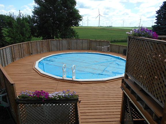 Extremely nice acreage located between Iowa Falls and Hampton. This acreage has it all including approximately 3,000 square feet of living space, a above ground swimming pool large deck area over 1,600 square feet of deck area, fruit trees and a over-sized two car garage that is 24 x 30 and 32 X 24 shop area. There is 2.92 acres M/L Inside you will enjoy large living room, oak kitchen with counter-tops that are granite, additionally on the main floor there is a bedroom and master suite complete with whirlpool tub and a steam shower. In the basement you will wood burning fireplace, office area, two additional bedrooms and laundry room. The is a also a sun-room area that has tile floors and is heated and would be great for entertaining.
