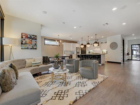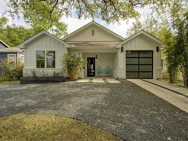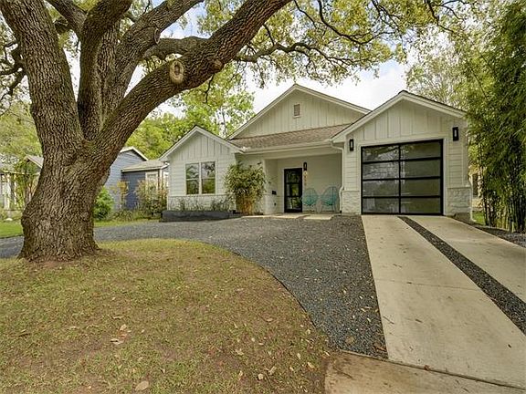 Interior designer's personal home - loaded with upgrades! Wood flooring throughout, Verona 36" gas range, quartz countertops, designer wallpaper, and high-end plumbing / lighting fixtures. Modern dimensional paneling in entry, shiplap accent wall in master, patterned cement tile in hall bath, spa like Carrera master bath, and glass garage door. 240 square foot detached studio shed in back - perfect for game room! Covered back porch. Awesome landscaping with clumping bamboo. One of a kind!