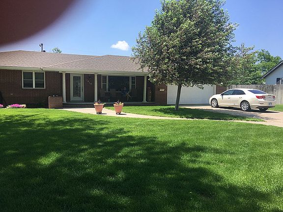 3 bedroom, 1 & 3/4 bathroom ranch home in Goodland, Kansas. Our home has many updates which start with a welcoming front porch with 3 white pillars that can be decorated for celebrating holidays and change of seasons! A new, open kitchen with all Kenmore stainless steel appliances; built in microwave and French door refrigerator. Floor to ceiling Crestwood cabinets with 8 easy close drawers, lazy susan, two spice drawer pullouts, pantry with roll out shelves, opening shelving for displaying your collectibles and glass fronts on two sets of upper cabinets. Hardwood floors in kitchen, dining area and 1 bedroom/office. French doors in dining room open to a pergalo and huge fenced backyard. Completely remodeled main bathroom with Crestwood cabinets, Onyx tub, countertops and updated utility room with 3/4 bath. Neutral colors and carpet throughout; carpet is 3 years old. Extra wide 2 car garage with newer garage door. Full brick exterior. Full unfinished basement that is ready for your ideas. Underground sprinkler system. Newer roof. Our house is located in a super nice neighborhood. Please contact me for more pictures and information.