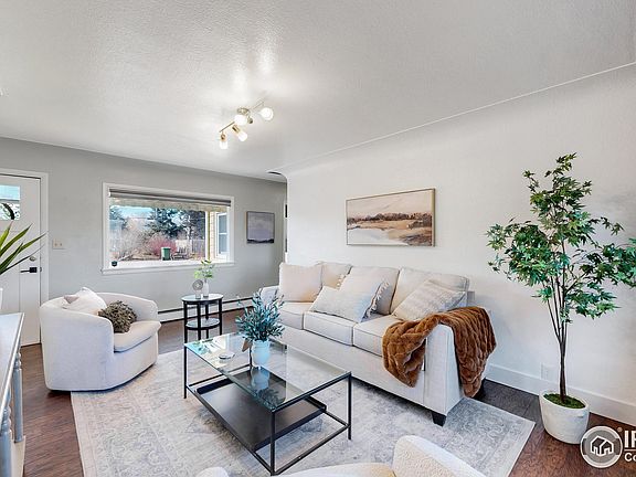 This updated adorable ranch is well lit and happy. Situated on a gigantic lot that is waiting for your urban garden this Spring. Centrally located close to Lake Loveland and a very short jaunt to downtown. You'll love the character and charm of this 1950's home featuring coved ceilings and arched doorways. Great kitchen layout has an eat-in area under the large windows. The backyard seems to go forever - no backyard neighbors - has a chicken coop and built -in firepit. NO HOA! Sellers to provide a new roof. Train behind home does not honk its horn since it goes below the road - you can barely even see it when it passes.