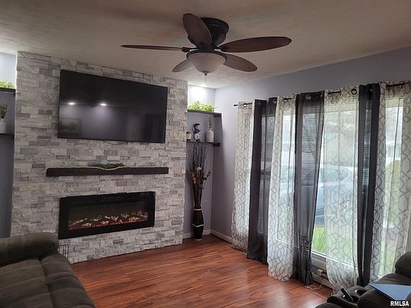 Super cute 3 bed, 2 bath brick ranch with full basement! Home has hardwood flooring in bedrooms, large bath on main floor and new electric fireplace in living room with convenient blue tooth lighting. Basement has a large laundry/utility room, as well as a recreation room, full bath and full kitchen with stove and small refrigerator. Additional large room in basement (19x12) is used as a guest bedroom. Attached 1 car garage, as well as a 20x20 metal building with private drive, garden shed and tree house in backyard and all have electricity. New sprinkler system in yard. All appliances convey. Other flooring in laundry room is concrete. Don't miss this one!