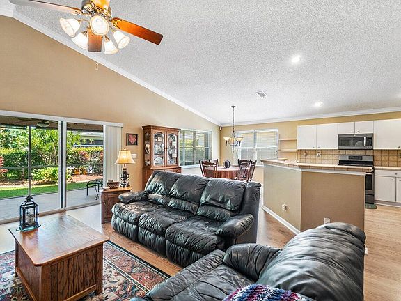 SO MUCH MORE THAN JUST A 3 BR 2 BA HOME!! UPGRADES INCLUDE LAMINATE FLOORS IN LIVING AREA & PRIMARY SUITE, NEUTRAL DECOR, VAULTED CEILINGS, CROWN MOLDING, CEILING FANS, GAS STOVE, DRYER, & WATER HEATER, DECORATIVE CONCRETE DRIVE & PATIO, RETRACTABLE SCREEN DOORS IN FRONT & BACK, ACCORDION SHUTTERS, & ELECTRICAL OUTLETS UNDER EAVES WITH INDOOR TIMER FOR HOLIDAY LIGHTING. NEW IN 2016 - ROOF & FRONT GUTTERS, A/C WITH AIR PURIFIER & UV LIGHT, STAINLESS APPLIANCES (DISHWASHER IN 2020), LANDSCAPING, EXTERIOR PAINTING, & DIGITAL SPRINKLER SYSTEM. EXPANDED SCREENED PATIO OVERLOOKS A PRIVATE, SERENE GARDEN SETTING. LOW HOA FEE. PALM BEACH CENTRAL HS DISTRICT. QUICK CLOSING POSSIBLE.
