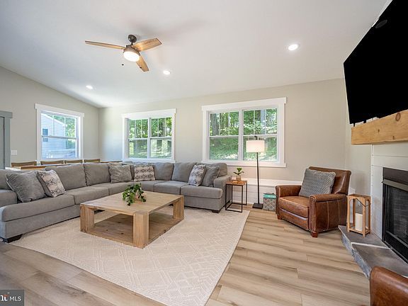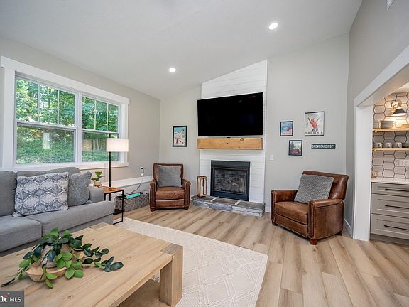 Completely updated and remodeled home just 5 minutes from Deep Creek Lake and Wisp ski resort! Located on 3+ acres, this rustic style home sits on a large, level yard with a setting of total peace and serenity. The entire home was completely renovated in 2023 - including a brand new metal roof, new windows, doors, flooring, decking, central a/c, and siding. The interior has a completely new floor plan - featuring a large, upper level primary bedroom suite with it's own private bath - a brand new kitchen with quartz counters, cabinets, and stainless appliances - brand new bathrooms - a new main level laundry room - and a large living room with gas fireplace. Enjoy those family and friends get-togethers outside on the side porch with a hot tub and fire pit. Established vacation rental. Turnkey with rustic and vacation home style decor throughout!