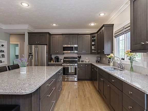 Perfection! Truly the only way to describe it. Gorgeously updated from top to bottom, 1.5 story home on the lake. Stunning views from almost every window. Large open floor plan with main floor master suite, two story family room and gorgeously updated custom kitchen with newer custom cabinetry, quartz countertops, enormous island with double sided storage, and all the bells and whistles of high end new construction. 2nd level has 3 additional large bedrooms, and beautiful open loft area, perfect for a media room, home office, or play room. Full finished basement with custom flooring, gas fire place and large additional family room. Full finished lower level bathroom and possible 5th bedroom- its framed and ready to go. Large fully fenced yard with gorgeous landscaping, and breathtaking views. This house is a show stopper!! Recent updates include but are not limited to: Extensive kitchen remodel- newer custom cabinetry, granite counter tops and SS appliances 2013, all bathrooms remodeled 2013, updated flooring 2013, Newer stair railing, basement remodel 2016, newer water heater 13, HVAC 2015, garage doors 2016, some windows replaced 2017, and replaced the patio door.