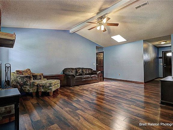Country living yet close to everything! Adorable home features spacious living room that opens into dining area & kitchen. Great, open feel with vaulted ceiling in living room & wood burning fireplace. Three bedrooms, 2 baths & 2 car garage. House has laminated wood floors & tile, no carpet. Some fresh interior & exterior paint. Seller is offering 2/10 Home Warranty. Covered patio & large fenced yard with storage shed. Must see to appreciate this home! Better hurry as it is in move-in condition.
