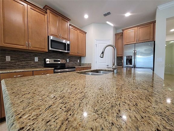 - Interior Features: Ceiling Fans(s), Eating Space In Kitchen, High Ceiling(s), Open Floorplan, Stone Counters, Walk-In Closet(s), Crown Molding, Thermostat, Kitchen/Family Room Combo, Living Room/Dining Room Combo