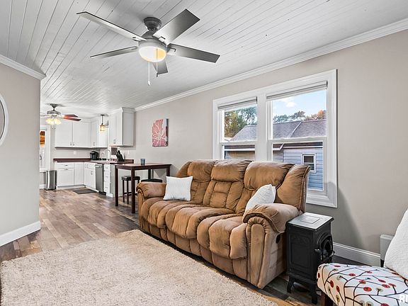 Charming three-bedroom, two bath bungalow offering both character and modern updates. The kitchen was beautifully refreshed in 2018 with sleek stainless-steel appliances and updated finishes, making it a perfect space to cook and gather. A brand-new HVAC system installed in 2024 to ensure year-round comfort and peace of mind. The home also features a partially finished basement, ideal for extra living space, playroom, or storage. Car enthusiasts or hobbyist will love the extra-large garage, easily accommodating four or more vehicles. Step outside to a private, fenced backyard, perfect for relaxing, entertaining, or enjoying quiet evenings.