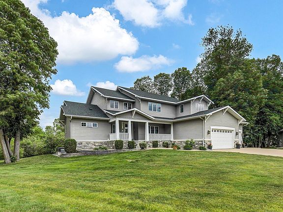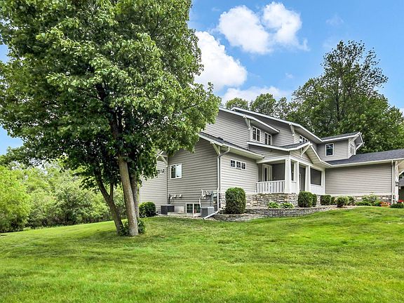 This exec home at the end of Cougar Court in the Wilds has it all for true luxury living. 5,000 square feet of open concept and natural light, with such an easy flow around the home. Huge windows look out the living room and kitchen and focus on Antler Creek winding through the back yard. Huge kitchen featuring real hardwood flooring, Corian countertops, a huge center island with range, double-ovens, stainless steel appliances, a large pantry, built in office desk and plenty of room for a kitchen table. Formal din rm. Large maintenance free deck with dual staircases down to yd. 5 BR, 4 BA and oversized rooms highlight the rest of the house. Large main floor master with Jacuzzi tub, tiled walk-in shower, and oversized closet. 3 BR upstairs, and 2 in lower level. Wet bar in lower-level family room. Gas fireplaces in living room and family room. Tons of storage and many upgrades and updates (see in supp. on MLS). Front porch, huge oversized 3 stall + garage and an acre of gorgeous yard!