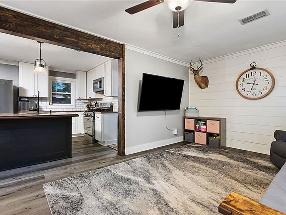 - Ceiling Fan(s), Kitchen Island, Kitchen/Family Room Combo, Updated Kitchen, Window Treatments