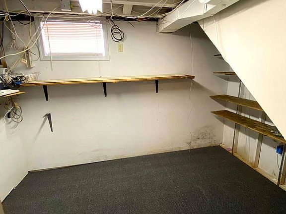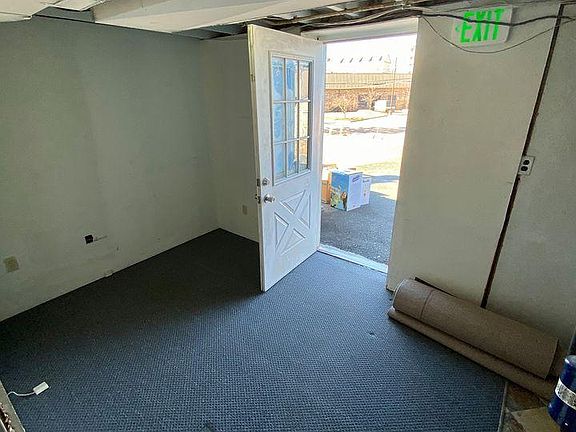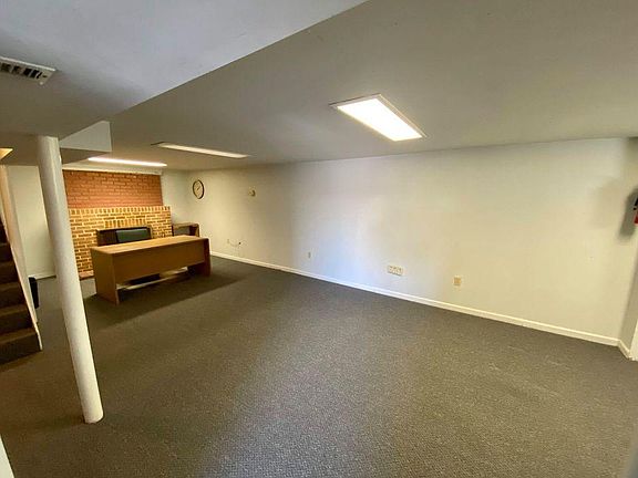 This basement office space includes the main basement level, one bathroom, an entryway room, a utility storage room, an upstairs office (not pictured), and an additional storage room (not pictured). Convenient private parking and utilities are also included.